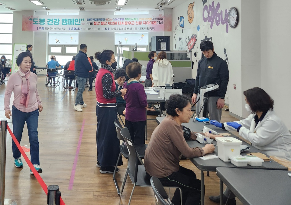 [26 марта 2024 г.] Наш медицинский центр Новос в Сеуле принял участие в кампании «Dobong Health Campaign», организованной Корпорацией по управлению объектами района Добонг в Культурно-спортивном центре Чандон, совместно с Центром общественного здравоохранения района Добонг и Центром помощи пациентам с деменцией района Добонг. В рамках мероприятия была проведена кампания по контролю и профилактике артериального давления, уровня сахара в крови, состояния почек, состава тела, а также по управлению метаболическим синдромом.